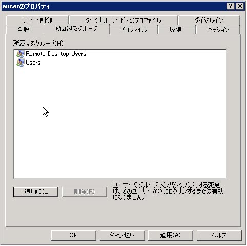 Remote Desktop Users をダブルクリックし、OKをクリック。
