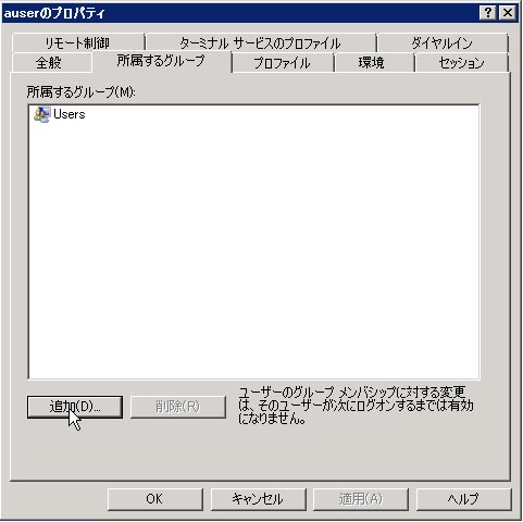 新しく作られたユーザーを右クリックしてプロパティを開く。